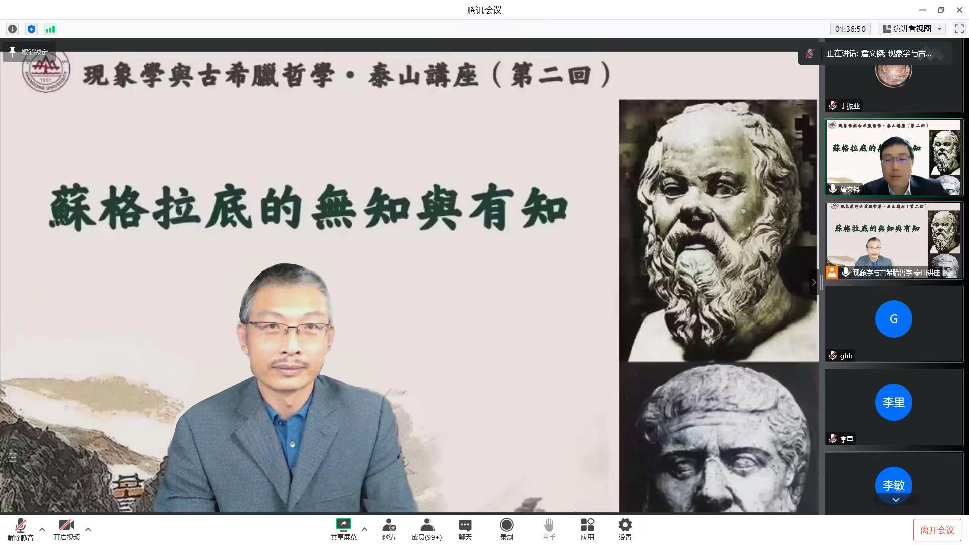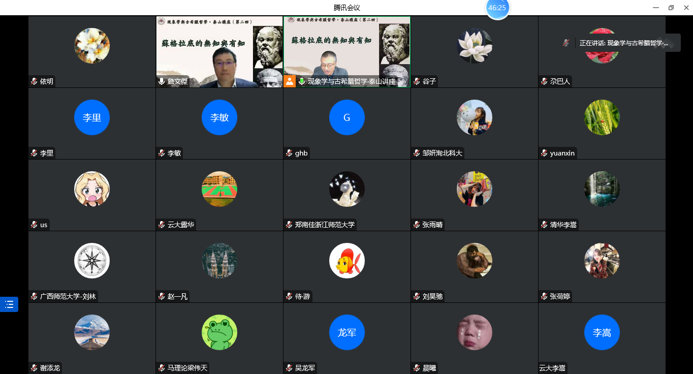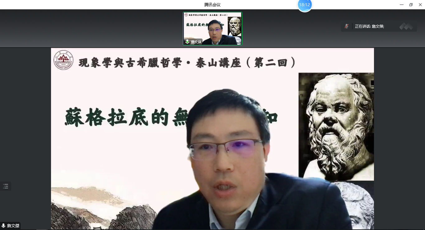 2022年11月1日晚上,9499www威尼斯现象学与中国文化研究中心、9499www威尼斯成功举办“现象学与古希腊哲学”泰山讲座(第二回)。本次讲座采取线上视频会议的形式,由校内外近300名专家学者和师生在线参与。本次讲座主讲人是中国社会科学院哲学研究所、中国社会科学院大学哲学院詹文杰研究员,主讲题目是“苏格拉底的有知与无知”。讲座活动由9499www威尼斯现象学与中国文化研究中心、9499www威尼斯陈治国教授主持。