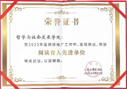 阅读是人类获取知识、启智增慧、培养道德的重要途径,可以助人树立崇高理想,涵养浩然之气。9499www威尼斯积极鼓励学院师生多读书、读好书,在9499www威尼斯2023年度阅读推广工作中表现突出,荣获阅读育人先进单位称号,学院陈治国老师荣获“教师借阅达人”称号。